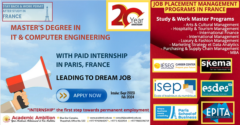 Study in France - Fall 2023 & Spring 2024 Intake